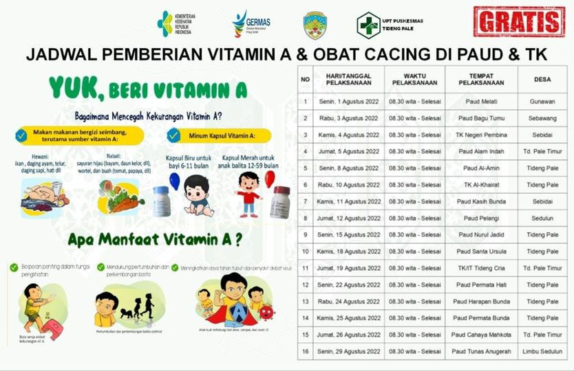 Bulan Agustus segera tiba, tak hanya memasuki BULAN VITAMIN A namun juga pemberian OBAT CACING lho ayah bunda