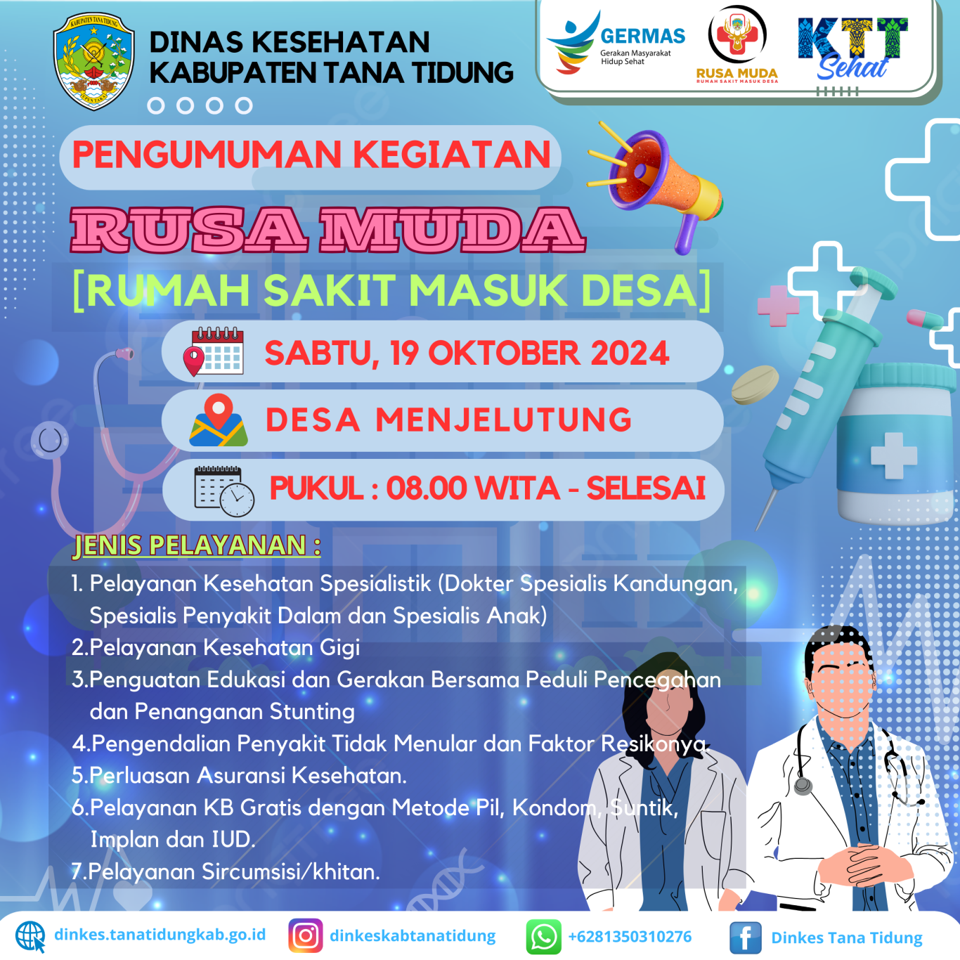 Informasi Kegiatan RUSA MUDA (Rumah Sakit Masuk Desa) yang dilaksanakan di Desa Menjelutung pada tanggal 19 Oktober 2024..
