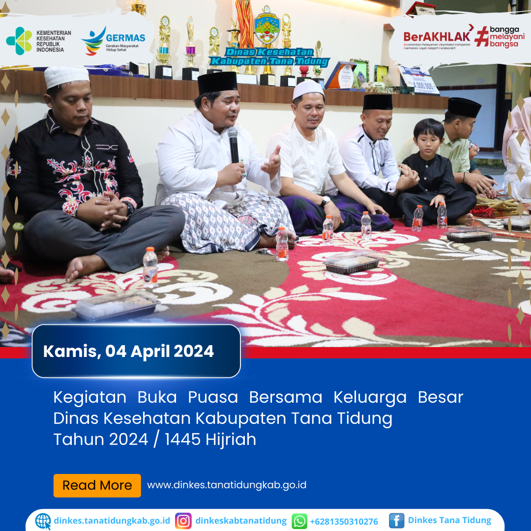 Keluarga Besar Dinas Kesehatan Kabupaten Tana Tidung melaksanakan kegiatan Buka Puasa Bersama yang dilaksanakan di Kantor Dinas Kesehatan Kabupaten Tana Tidung.