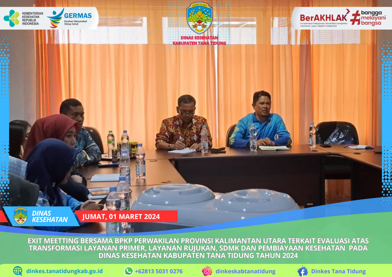 Kepala Dinas Kesehatan bersama dengan Seluruh Kepala Bidang, Perwakilan RSUD Akhmad Berahim dan Kasubbag di lingkungan Dinas Kesehatan melakukan Rapat Exit Meetting ..