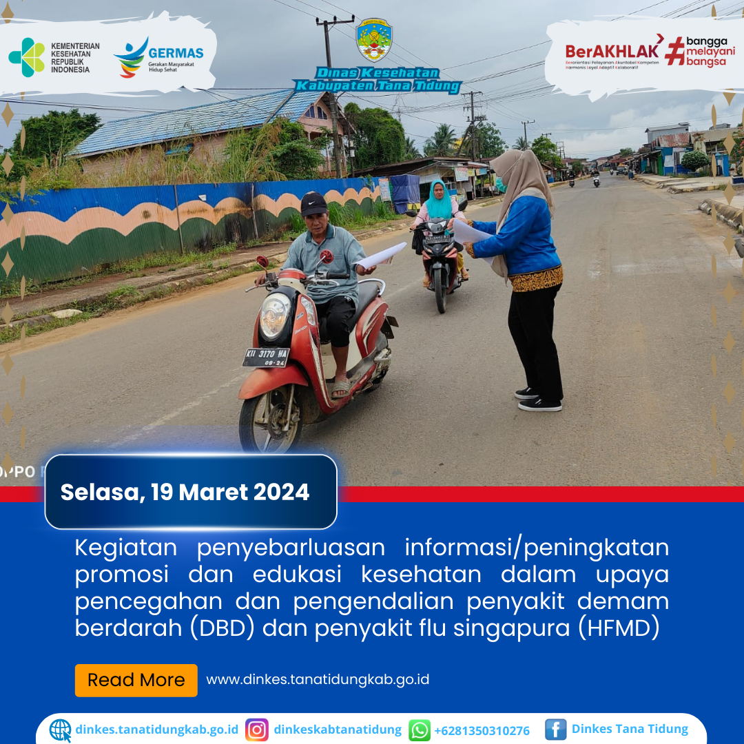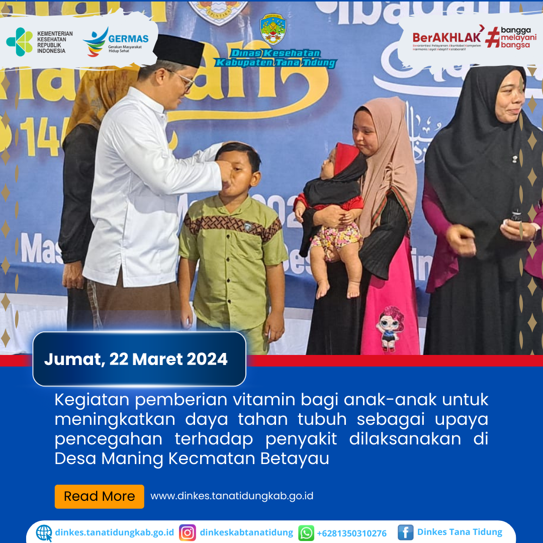 Dalam rangka menjaga daya tahan tubuh sebagai upaya pencegahan terhadap penyakit termasuk flu singapura (HFMD). Pemerintah Kabupaten Tana Tidung melalui Dinas Keseh..