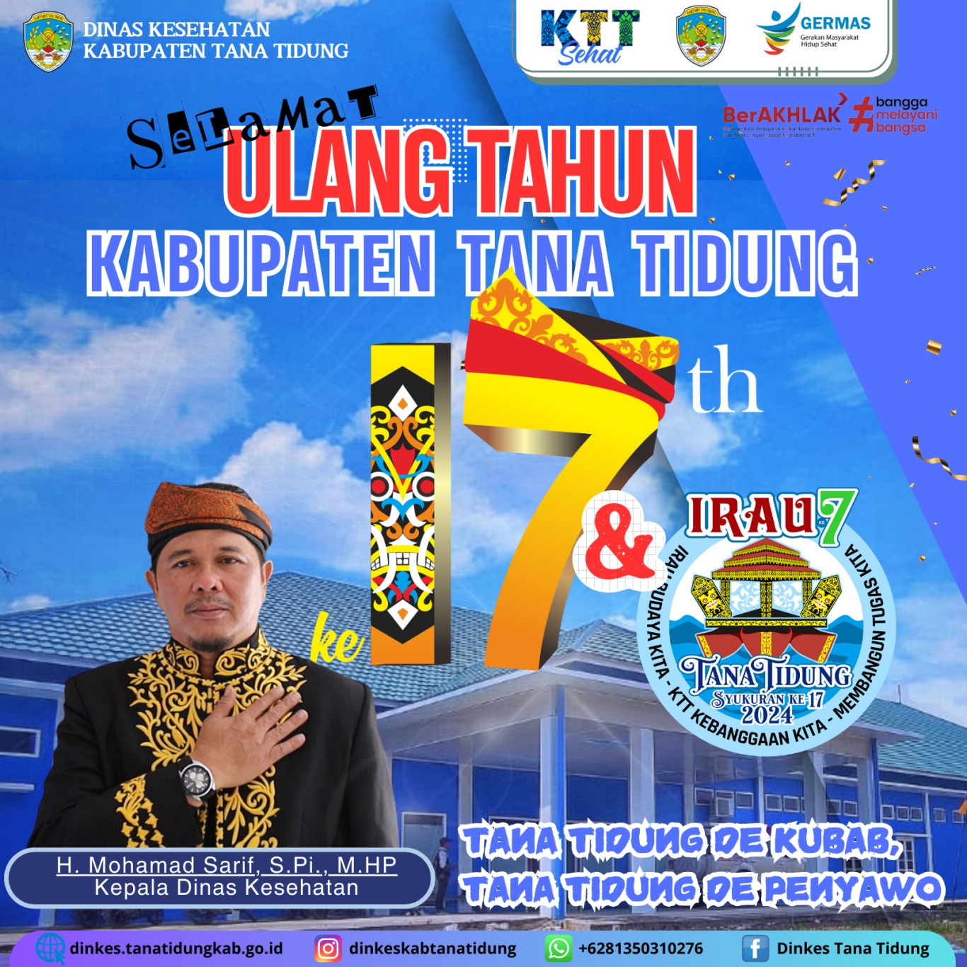 Keluarga Besar Dinas Kesehatan Kabupaten Tana Tidung mengucapkan “Selamat Ulang Tahun Kabupaten Tana Tidung Ke-17 dan Irau Ke-7 semoga Kabupaten Tana Tidung Menja..
