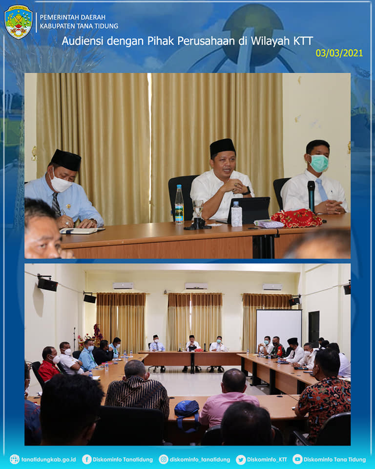 Pemerintah Kabupaten Tana Tidung gelar Audiensi dengan seluruh pihak perusahaan yang ada di Wilayah Kabupaten Tana Tidung, dipimpin langsung Bupati Tana Tidung didampingi Wakil Bupati dan Ketua DPRD Tana Tidung. Rabu, (03/03).