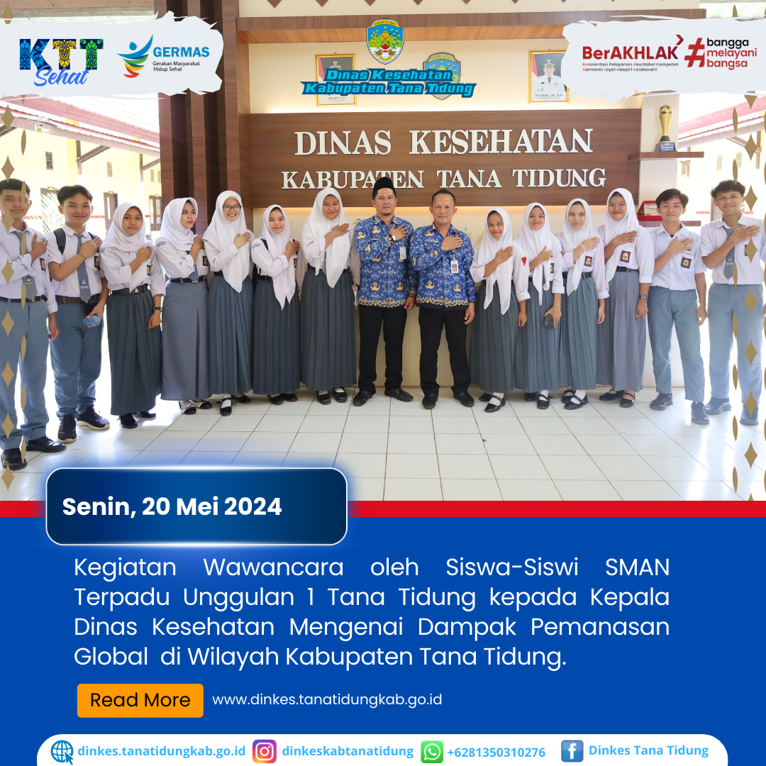 Kepala Dinas Kesehatan Bapak H. Mohamad Sarif, S.Pi., M.HP dan Sekretaris Dinas Kesehatan Bapak dr. Budi Samroni menerima kunjungan wawancara oleh siswa-siswi SMAN ..