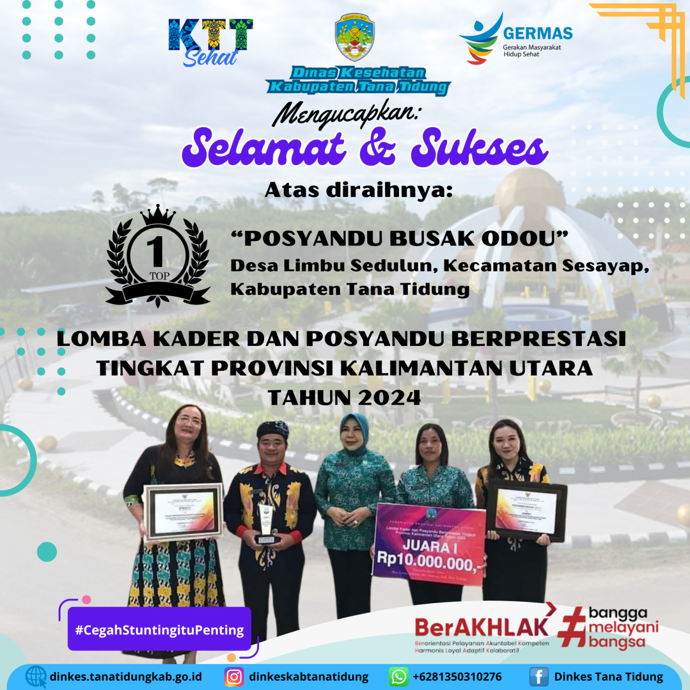 Selamat dan Sukses Kepada Posyandu Busak Odou Desa Limbu Sedulun, Kecamatan Sesayap atas diraihnya Terbaik 1 Lomba Kader dan Posyandu Berprestasi Tingkat Provinsi Kalimantan Utara Tahun 2..