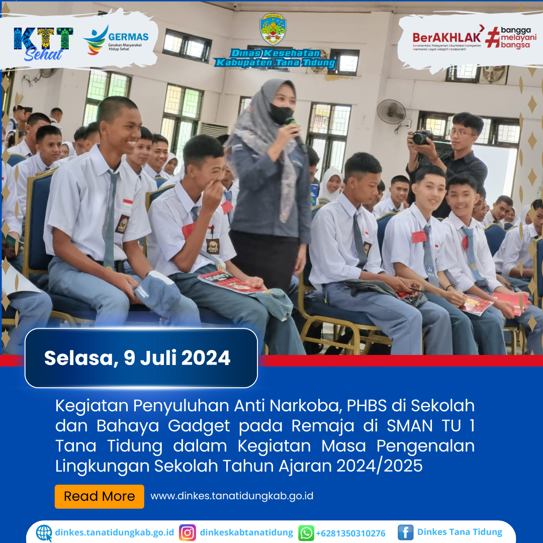 Kegiatan Penyuluhan Anti Narkoba, PHBS Disekolah , dan bahaya Gadget pada Remaja di SMAN TU 1 Tana Tidung dalam kegiatan Masa Pengenalan Lingkungan Sekolah Tahun aj..