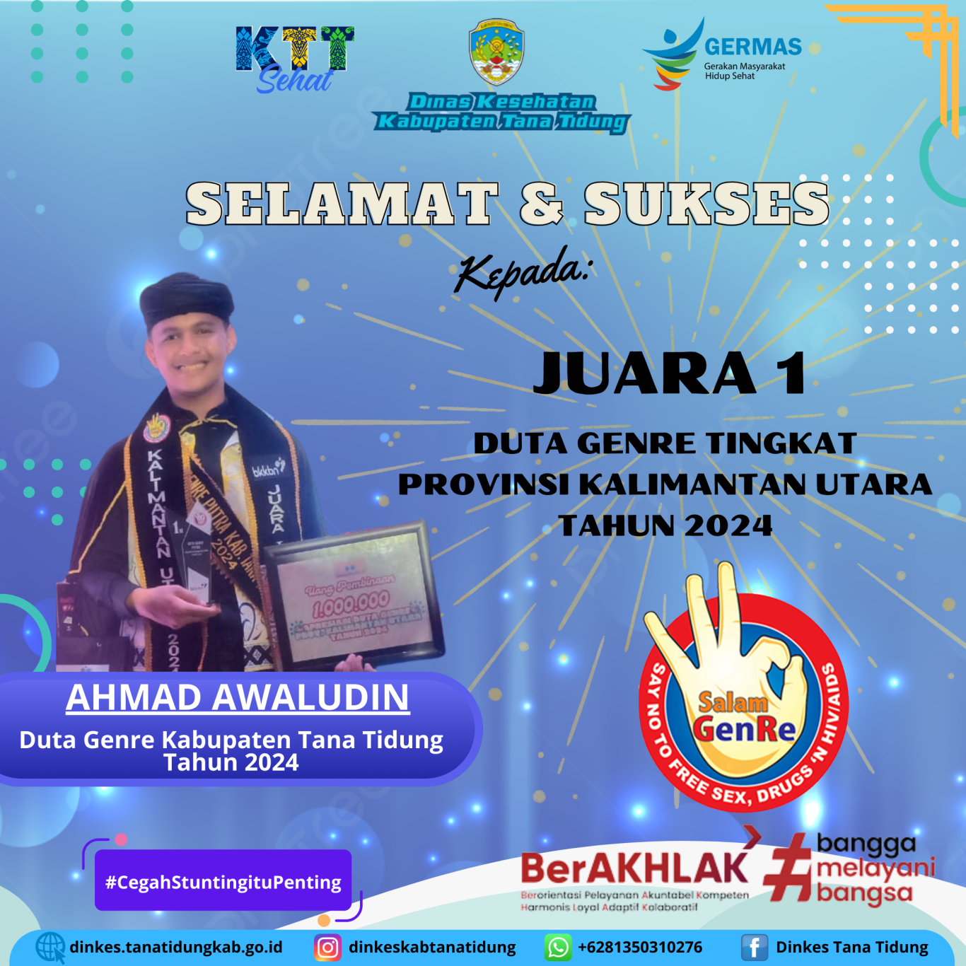 Selamat dan Sukses kepada Ahmad Awaludin atas prestasinya menjadi Juara 1 Duta Genre Tingkat Provinsi Kalimantan Utara Tahun 2024