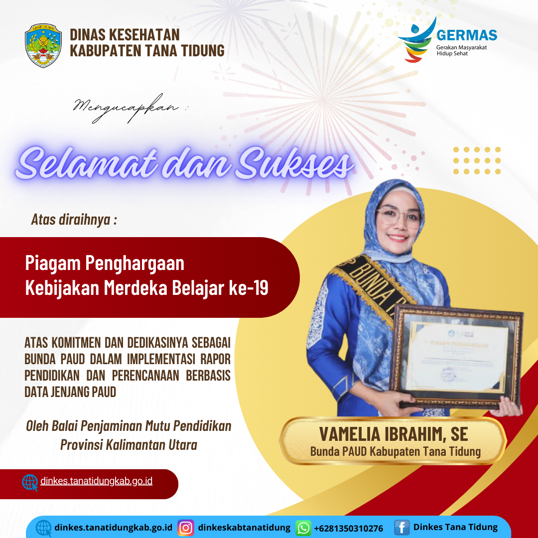 Keluarga Besar Dinas Kesehatan Kabupaten Tana Tidung mengucapkan Selamat dan Sukses kepada Bunda PAUD Kabupaten Tana Tidung atas diraihnya Piagam Penghargaan Kabijakan Merdeka Belajar ke-..