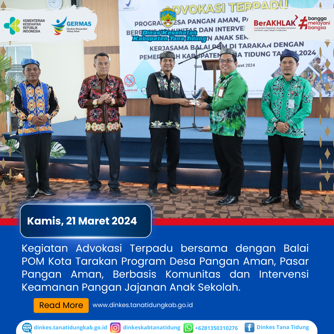 Pemerintah Daerah Kabupaten Tana Tidung melalui Dinas Kesehatan dan Badan POM Kota Tarakan menyelenggarakan Kegiatan Advokasi Terpadu Desa Pangan Aman, Inte..