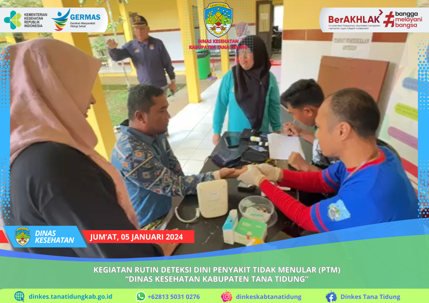 Kegiatan rutin Dinas Kesehatan Kabupaten Tana Tidung melalui Bidang P2P yaitu melakukan pemeriksaan deteksi dini Penyakit Tidak Menular (PTM) kepada seluruh staf Di..